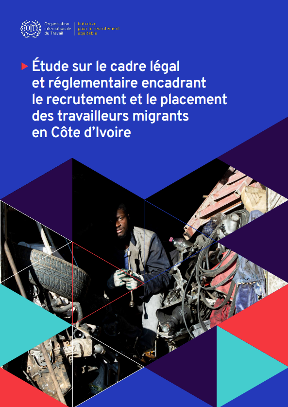 Cette étude analyse le cadre légal et réglementaire encadrant le recrutement et le placement des travailleurs migrants en Côte d’Ivoire, en évaluant sa conformité aux normes internationales du travail ainsi que son efficacité opérationnelle. Fondée sur les Principes généraux et directives opérationnelles de l’OIT pour un recrutement équitable et sur les instruments internationaux pertinents, elle s’inscrit dans la continuité des travaux menés dans le cadre du Programme intégré pour le recrutement équitable (FAIR – Phase III). Elle vise à appuyer les efforts de révision et d’harmonisation du cadre juridique national, en lien avec l’élaboration de la politique nationale de migration de main-d’œuvre.